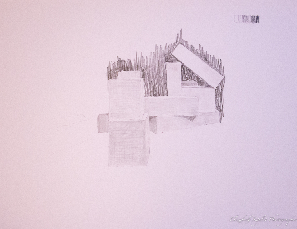 An outdoors class assignment to practice using proportions in our drawings. I much over estimated what I could draw in this exercise, and ended up concentrating on just one little part of the drawing.