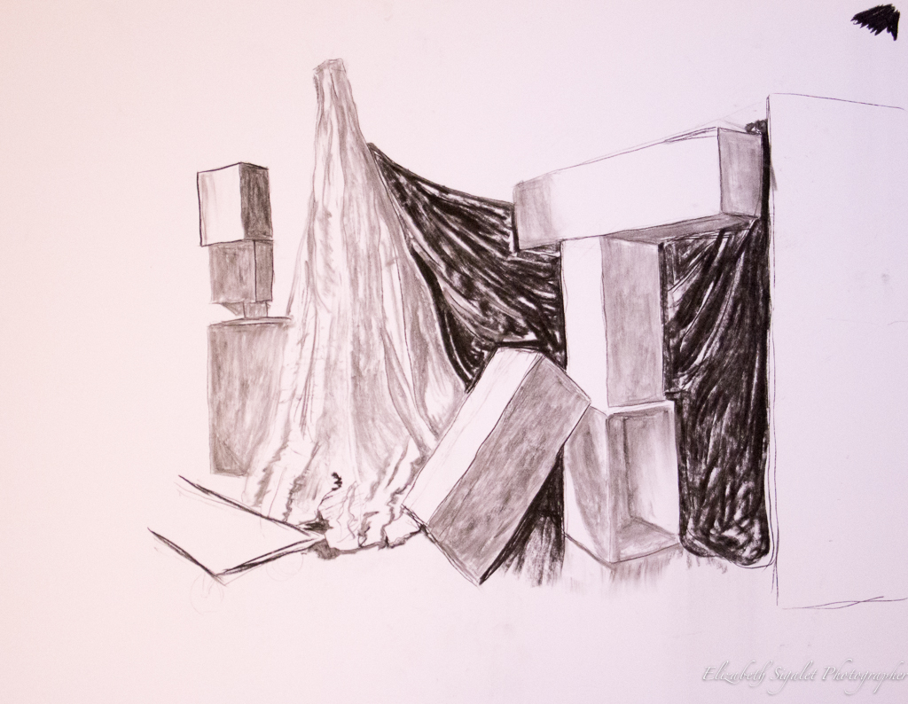 This assignment began in class. We brought materials for the collage and assembled them during class. the assignment was to reproduce, in pencil, a fully tonal, but slightly smaller version. The photo is better than some earlier shots, because I was able to use natural light. It does look a bit odd, because the light source used for the sketch is different than for the photo.