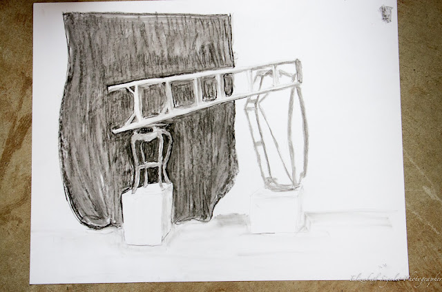 It was a mistake not to include the ropes that were used to hold up the ladder - it really is floating uncomfortably. I was trying to work more quickly and block in tonal areas. It wasn't very satisfying, I still struggle with controlling the charcoal and smoothing out strokes.
